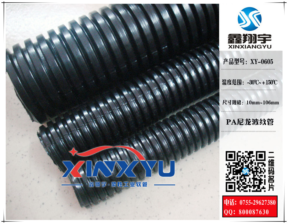 標準尼龍軟管內(nèi)部和外表均為波浪型,顏色一般為黑色,也有其他顏色,有的還可以開口,穿線更為方便快捷。
